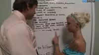 In this video, a beautiful and busty blonde tutor is having a private session with her hardworking student.He is not only diligent in his studies, but also incredibly eager to learn more about life and sexuality.As they sit together, discussing academic matters, the air between them grows electrically charged, hinting at their hidden desires.The blonde tutor, knowing she has captured her students attention, starts to playfully flirt with him, teasing him by accidentally brushing against his crotch when bending down to pick up a fallen paper.The young man feels his dick swelling in response and can no longer control himself as he reaches for her firm, supple breasts, and kisses her sensual lips hungrily.As the passionate kissing escalates, the student moves his hand lower, down to her skirt, feeling her tremble with a mixture of excitement and fear.He gently removes her thong, exposing her hairy, wet pussy, and starts fingering her while continuing to passionately kiss the blonde tutor.The tutor, who now knows this is more than just an innocent tutoring session, decides its time for things to get even hotter.She pushes him down onto his back on the chair and pulls down her skirt, revealing her plump ass cheeks and shiny labia.Straddling his face, she demands that he eats her out, as her hands roam over his bulging cock through his pants.Sensing the growing need in both of them for some release, the student gets on top, his hard dick pointing at the tutors waiting cunt.He slides it inside with one powerful thrust, fucking her wildly until they are both covered in sweat and moaning from pleasure.The blonde tutors pussy clenches tightly around him as she climaxes first, making the student want her even more.The young man, wanting to cum inside his teachers pussy, pulls out and directs his pulsating cock towards her ass instead.With every thrust, he gets closer and closer to release, until finally, he explodes a thick load of hot sperm all over her buns.The blonde tutor can feel her own arousal growing as she watches the students sperm drizzle down her ass, and decides its time for him to taste his own cum.She begs for him to give her a blowjob, sucking off the remaining traces of sperm while riding his face, until both of them reach another mindblowing orgasm together.As they finally catch their breath, the blonde tutor tells the student how impressed she is with his hard work and dedication.She awards him with her highest possible marks, knowing that a simple grade can never repay him for this unforgettable learning experience.