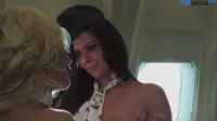 As the airplane slowly began to ascend, the two lesbian stewardesses could feel their horniness increasing with each passing minute.Clad in their uniforms, they shared a knowing glance as they mentally prepared themselves for the pleasurable experience awaiting them on this flight deck.With the passengers safely tucked away in their seats, the two women, wearing only their skirts and shirts without the hats, found an opportunity to make their fantasies come true.One of the stewardesses, with a sultry look in her eyes, began to unbutton the front of the others uniform, revealing their tits that were barely contained within their outfits.As she fondled one womans breast, she felt her pussy moistening at the sight and touch of the others delicate flesh.The second stewardess, unable to control herself any longer, leaned in for a passionate kiss as their lips locked with hunger.With the intense passion ignited between them, they continued to explore each others bodies, fondling and caressing every inch that was accessible.Their fingers danced across one anothers labia and clit, bringing about shudders of pleasure and moans of satisfaction from the eager women.Unsatisfied with only manual stimulation, they reached for the nearby toy box, which held an array of sex toys at their disposal a vibrator to add intensity to the action, a dildo for penetration, and other toys to fulfill their fantasies even further.Their hands shook with anticipation as they picked up the devices and prepared to use them on each other.The first stewardess began to finger her partners cunt while licking her clit, her eyes rolling back into her head as she felt waves of pleasure surge through her body.Meanwhile, the second woman used a vibrator on one of her own tits before slowly sliding it into her pussy, the moans from both women echoing through the empty cabin.As they continued to pleasure each other, their desire only grew stronger and hornier.The two women shared a passionate kiss as they exchanged roles one stewardess receiving an intense cunnilingus session while the other penetrated her with the dildo.Their bodies swayed in unison, moving fluidly from oral to penetration, all while maintaining eye contact to ensure they both reached orgasmic heights simultaneously.In the midst of their passion, one stewardess pulled out a pair of scissors and spread herself wide open, exposing her labia and clit for easy access by her lovers tongue.The vibrator hummed loudly in her pussy as she quivered in anticipation of the impending climax, moaning loudly as her partner continued to lick her with enthusiasm.Their lusty display reached its crescendo as both women climaxed at the same time, their bodies shuddering and crying out in unison.Sweat dripped from their brows and satisfied smiles crossed their faces as they finally released their passion upon this flight deck high above the clouds.And so, with a lingering glance and whispered sweet nothings, the two lovers went back to their duties, still basking in the afterglow of their steamy encounter on Lesbian Stewardesses Flight Deck.